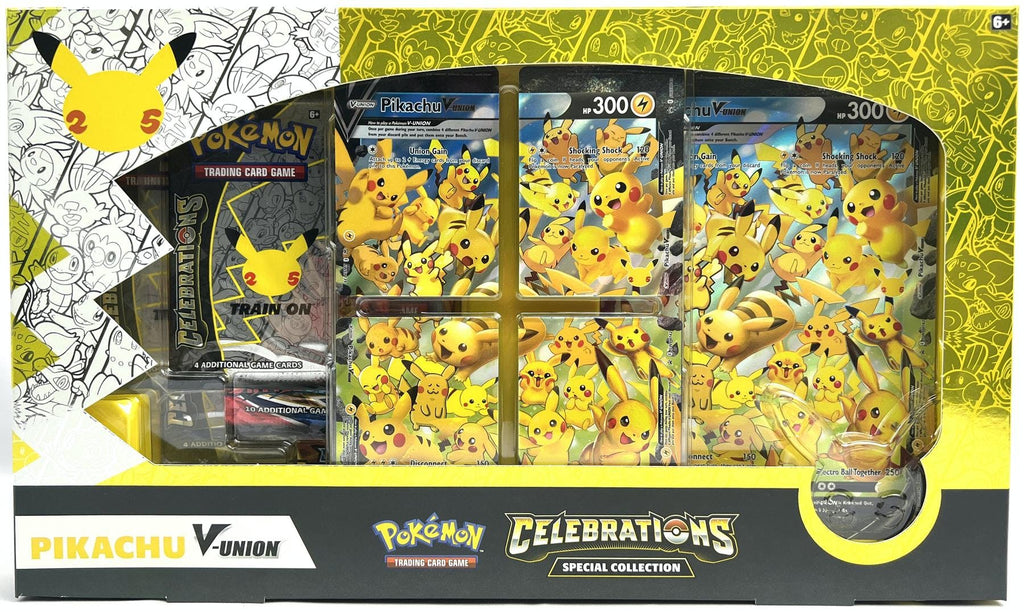 The Pokémon TCG: Celebrations Special Collection—Pikachu V-UNION includes: